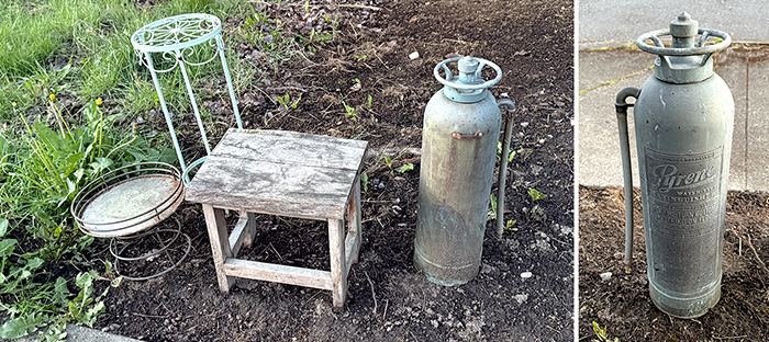 At least we assumed it was free, there was no sign. All the items looked old, but the fire extinguisher was interesting. It is a Pyrene fire extinguisher from the 1940’s or 50’s. They were carbon tetrachloride models used before the dangers of carbon tetrachloride were known. When your fire safety equipment is also a hazmat danger, you know you’re living in the good old days.