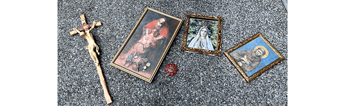 including two coins. One was a commemorative coin of a Pope and the other was a token from Chuck E. Cheese. These appear to be Catholic icons, so we will drop them off at a Catholic church to and let them deal with them. Except for the Chuck E. Cheese token, of course, we’ll hang onto that.