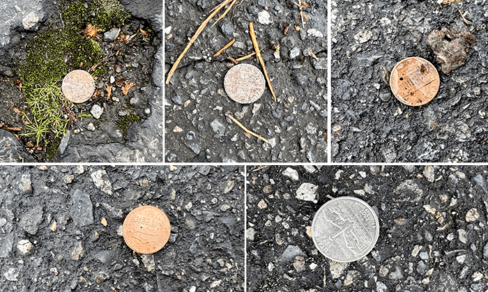 Twenty-nine cents today. The first two pennies were in a gas station driveway. The rest were in separate places in the park-and-ride.