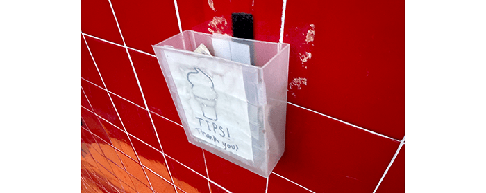 The drive-thru employees forgot to take in their tip container and there was more than two dollars in it. Oh, wait, perhaps they left it for us? No, it was tempting but we left it.