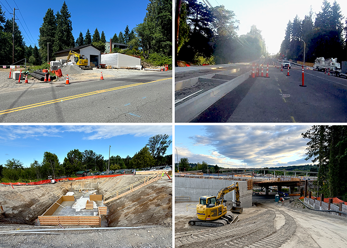 On the upper left is a valve house for the Tolt Pipeline that we walk by five days a week, and on the upper right is the widening of 100th Ave NE on our Friday route. On Saturday, we pass by the construction of a bus stop on the I-405 freeway and a major reconstruction of the I-405/SR522 interchange, currently almost 60% over the original budget. When we walk past, on the Saturday when they are not working, they keep all the portable light generators running. It’s no wonder they are over budget.