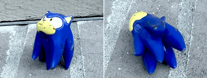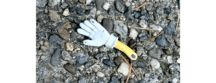 We found this tiny plastic hand by the road. At first, we thought it was a cheerful toy wave.