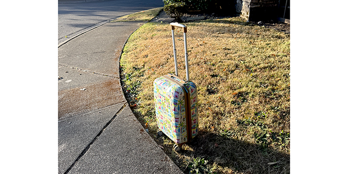 Judging from the floral design, it was a gift from his ex, the kind that thinks, ‘I can change you after we’re married.’ He didn’t. And didn’t take his luggage, either.