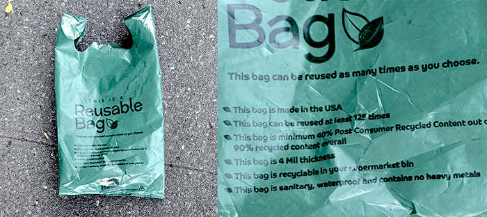 “This bag can be reused as many times as you choose.” This guy chose “none.”