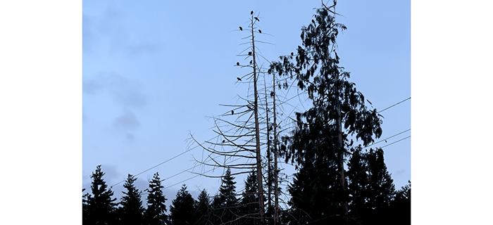 As we turned the corner from Juanita-Woodinville Way to NE 145th St, we spotted a tree with a bunch of crows perched in it.
