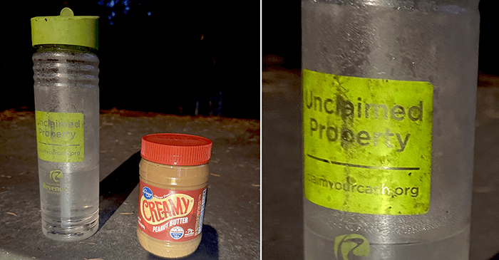 Well, hey! Most everything we find is unclaimed property. Maybe we’ll start mailing the peanut butter to them and hope they will send us a check.