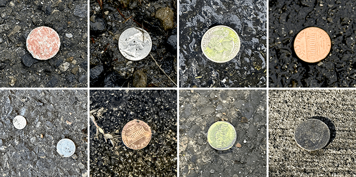 We found a penny on Monday, then we found reasonable change starting Thursday. We ended up with $1.18, a good week for no folding money.