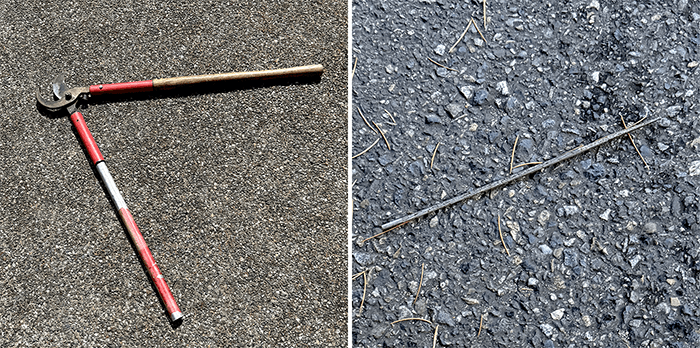 Two tools. A monster pair of pruning loppers. It made us want to count our fingers when we picked it up. Also, a small rat-tail file. Why a rat would want to file its tail is beyond us.