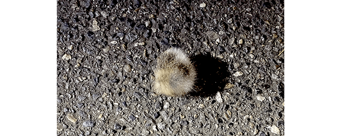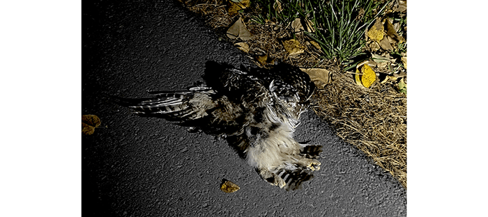 That was the upside. On the downside, we were about halfway to the 7Eleven when we heard an owl hoot really close to us, within twenty or thirty feet. We stopped and it hooted again then went silent. Then, about a hundred feet farther along, we found a roadkill.