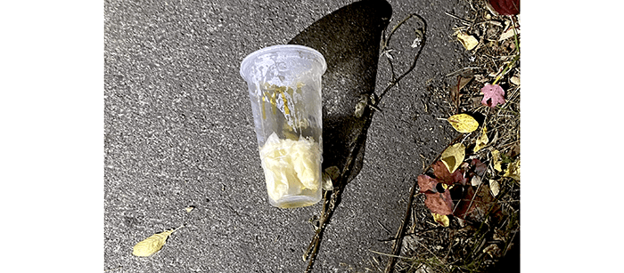 We had no idea why it was there but went about our normal activities of walking down to the gate looking for any trash or poop bags. As we passed the van, we picked up a candy wrapper then saw a milk carton and tried to pick it up with our pickers, but it was full. We started to stoop down to pick it up when the van door opened and a guy said, “That’s mine, I put it out to cool down.” We apologized and started to walk away, but he asked if we could hand it to him. Uh, sure. He wished us a nice day.