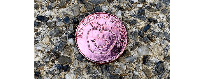 “100 Days of School.” Is this a reward to students when they attend school for 100 days? The normal school year is about 180 days but maybe 100 days is the number required to matriculate to the next grade. “Good work, kid, here’s a worthless coin. Take the rest of the year off including holidays and weekends.”