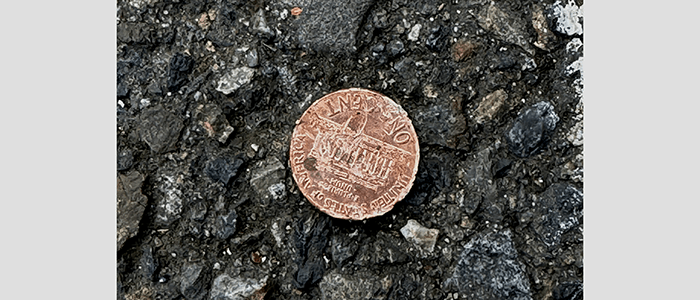 Today Janet crossed the Safeway parking lot to check out her favorite drive-thru. The drive-thru was a bust, but she picked up a penny in the Safeway parking lot.