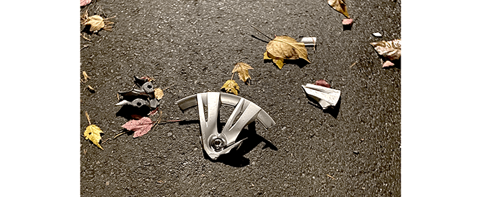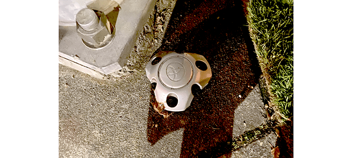 We found a Toyota hub cap hiding behind a streetlight trying not to be seen.