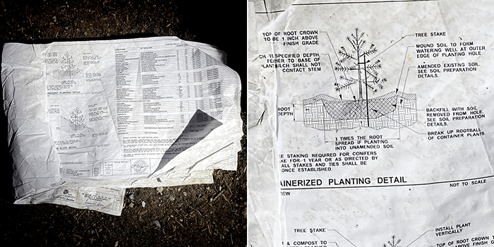 We found a Washington Department of Transportation plans for landscaping a section of road. It was a booklet of about fifteen, 11×17-inch pages of landscaping details including the specific plants and how to plant them.